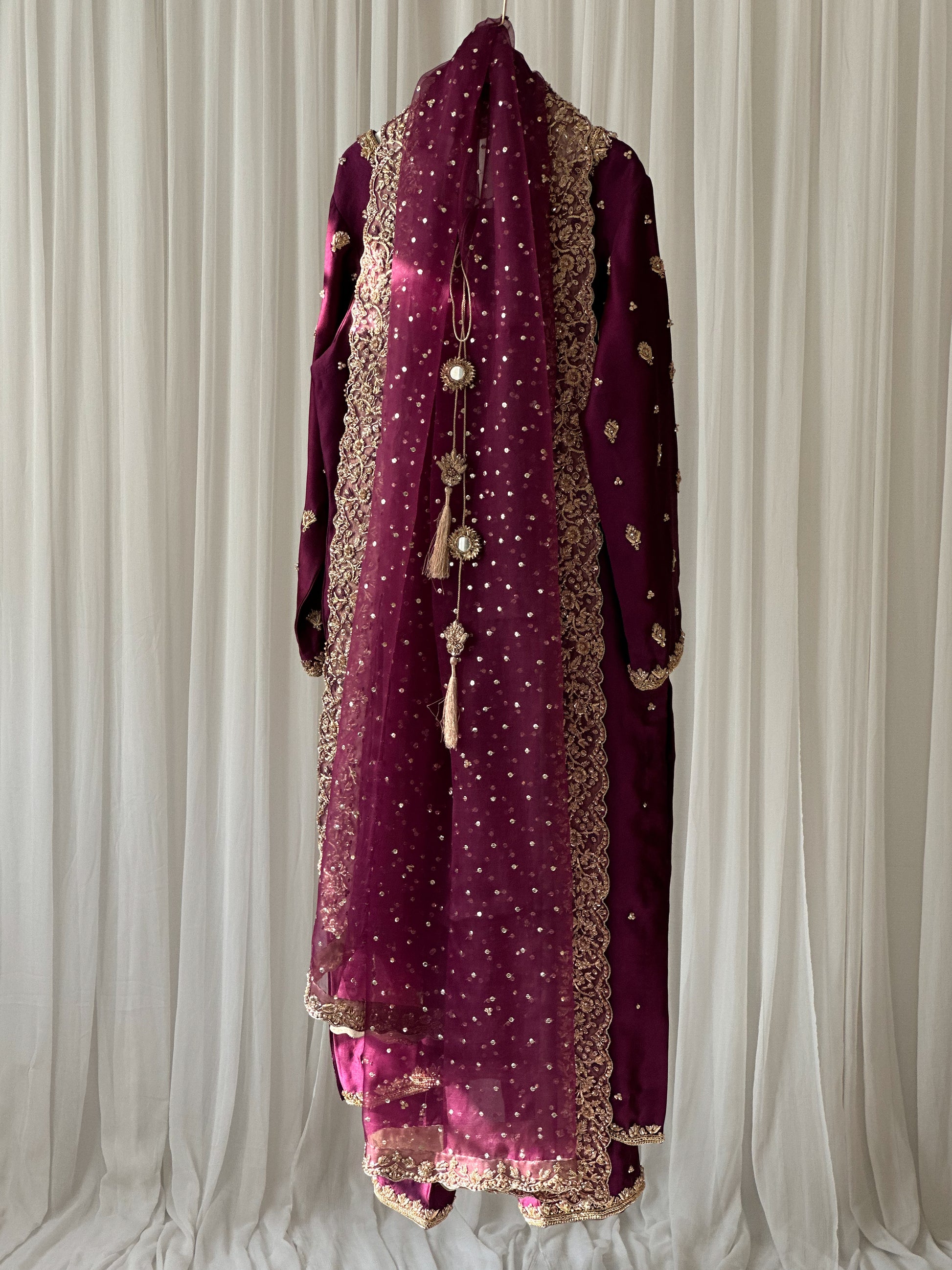 Phlox from our Naatiq collection is a graceful three-piece outfit featuring a beautifully designed kameez, matching trouser, and an elegant dupatta. Crafted for formal occasions and weddings, With its delicate embellished detailing and balanced silhouette, Phlox makes a lasting impression.