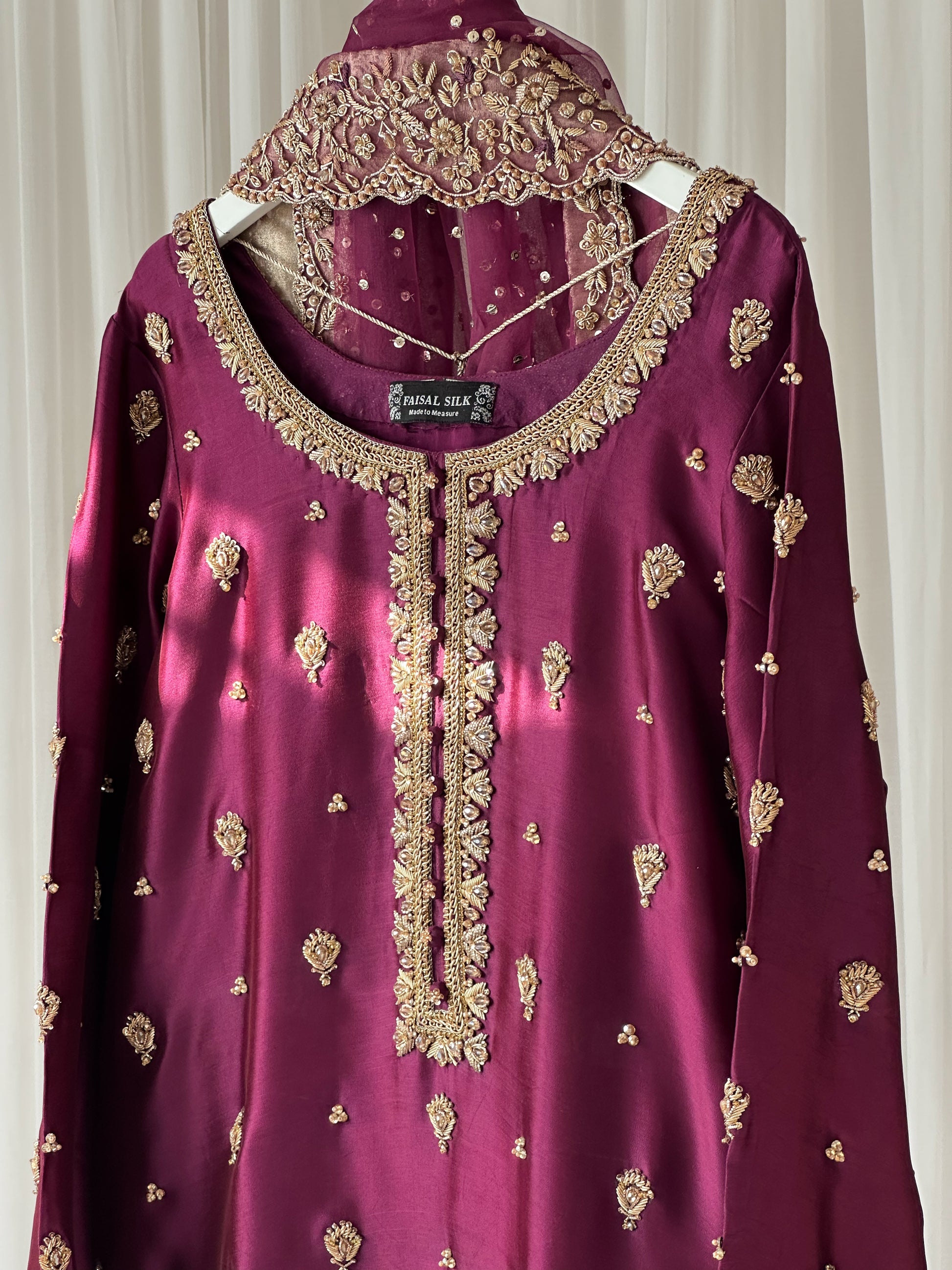Fabric, color & layout customization is available along with custom stitching to your measurements. WhatsApp us for Custom Order