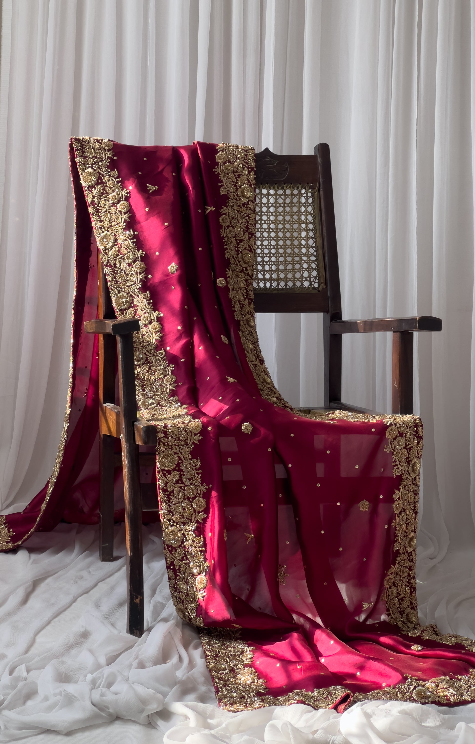 A hand-embellished Bridal Red Dupatta designed exactly to the Safa’s vision. Customized and crafted with care and premium detail. Ideal for brides who want quality, comfort, and full customisation.